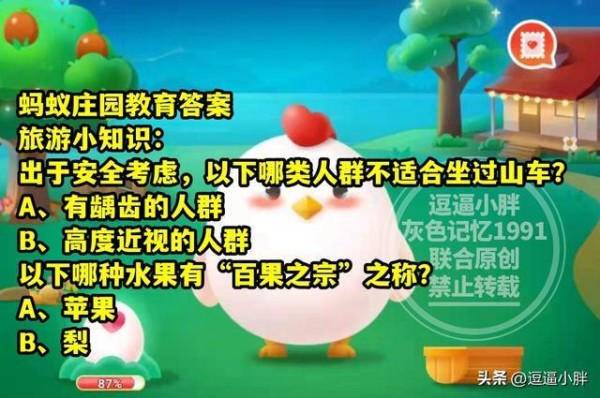 哪类人群不适合坐过山车?哪种水果有百果之宗之称?蚂蚁庄园教育
