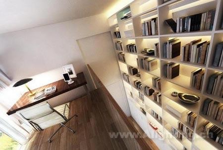 其次是要注重灯光布局功能。为了营造良好的光照环境,在书房的布置上首先要注重灯具的实际照明效果,不必太注重装饰,简洁大方即可。光源既可以营造各种风格和品味,又可为读书写字等提供照明条件。一个普通的灯泡挂在天花板上,周围加上装饰的彩条,它投射出来的光和台灯的光是不同的两种效果。因此,在装饰书房时,—定要考虑光的局部功能特点,才能使书房的特性显示出来。任何别出心裁的照明和多余的辅助光,都会带来适得其反的效果。