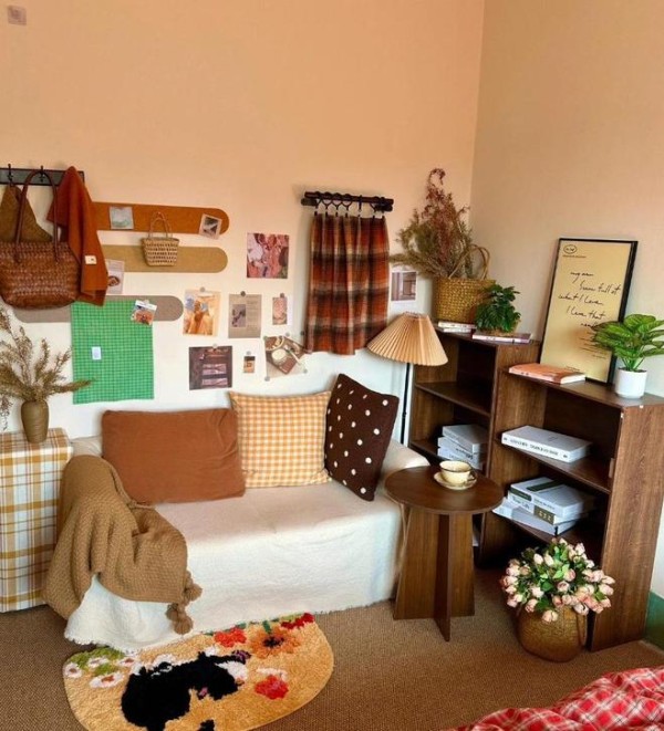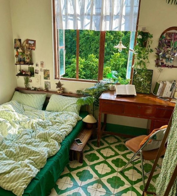 把墙壁粉刷一下,并且把废旧的家具替换掉,睡床的位置也进行了重新的布置。墙壁上挂一些收纳架,摆放上装饰品,再加点绿植。原本杂乱的卧室,瞬间变成温馨、舒适的空间。