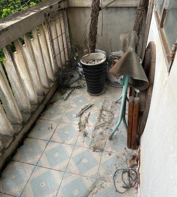 客厅的外面带有一个开放式的阳台,原本是脏兮兮的,还堆放了各种杂物、垃圾,整个画面简直“惨不忍睹”。