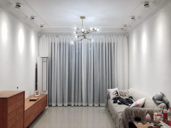 相信全国的恒大业主都和我家一模一样,我真的不喜欢,尤其是这个背景墙还有水晶灯,于是我把家里的墙面全都敲掉了,进行了最基本的电路改造,加了十几个插座,加了射灯,换掉全屋的开关插座面板和水晶灯。