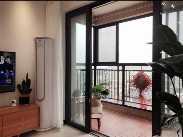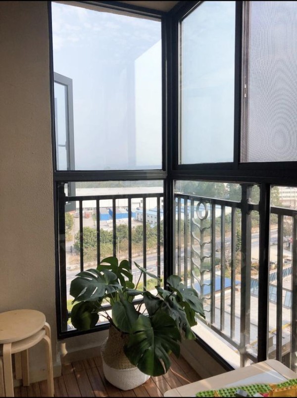 客厅阳台,原本的阳台是开放式,我觉得鸡肋又不安全,所以直接做了封窗。阳台买了双层玻璃推拉门,把阳台改造成了一个小花园。