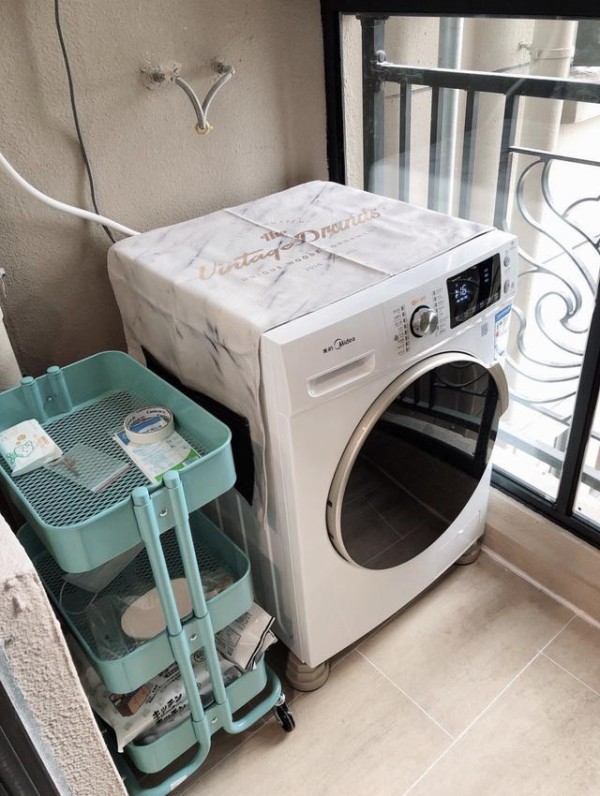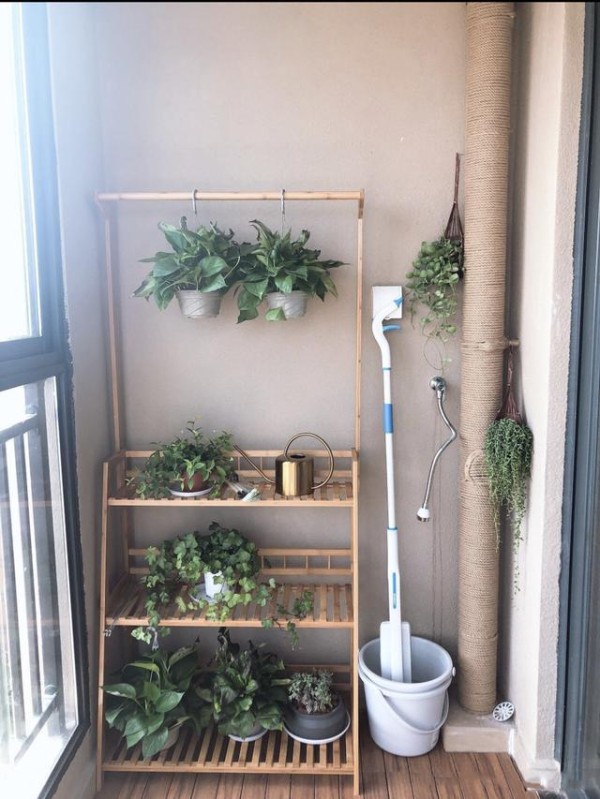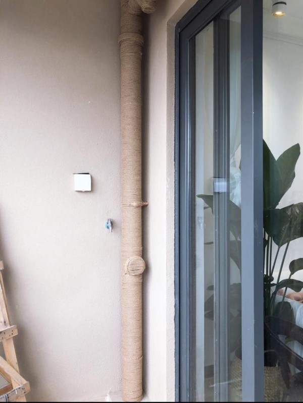 阳台的墙壁没有改,上图的水管没有办法改造,我灵机一动去网上买了麻绳,一圈圈地把管子缠了起来。看起来就没那么难看了。