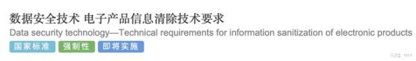 据了解,国家标准《数据安全技术 电子产品信息清除技术要求》由252(中央网络安全和信息化委员会办公室)归口,委托TC260(全国网络安全标准化技术委员会)执行。