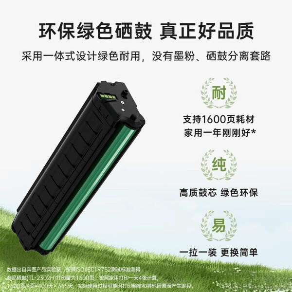 这款打印机的打印速度可达到每分钟25页,能够轻松满足日常办公和学习上的各种需求,尤其适合学生和家庭使用。无线连接功能让你在远离打印机的情况下,也能通过手机轻松发送文件,还支持微信远程打印,真正做到了随时随地都能打印。2.4英寸的彩色触控屏操作简单直观,让每一位用户都能快速上手。大容量碳鼓设计则能支持长达4500页的打印量,极大降低了用户更换耗材的频率,节省时间和成本。