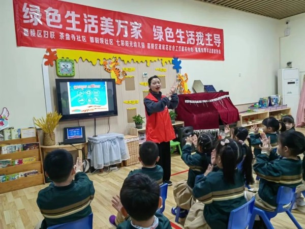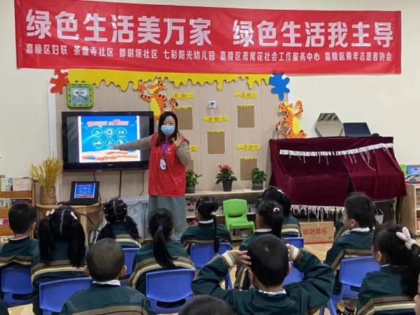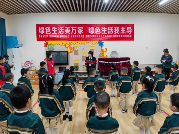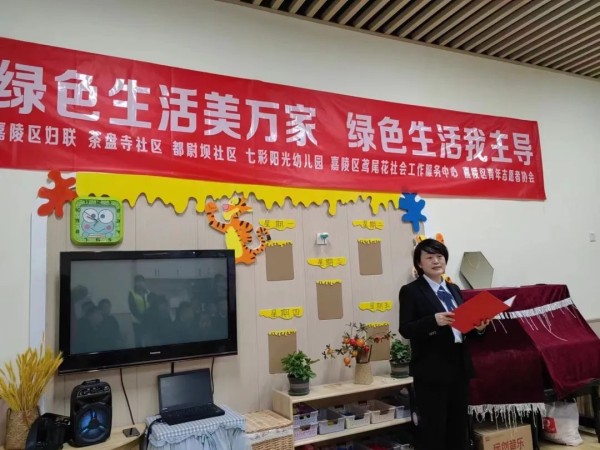11月4日上午,由嘉陵区妇联主办,嘉陵区鸢尾花社会工作服务中心承办,嘉陵区青年志愿者协会、南湖街道都尉坝社区、茶盘寺社区、七彩阳光幼稚园共同协办的“绿色生活美万家 绿色生活我主导”主题活动在嘉陵区七彩阳光幼稚园开展。旨在引导小朋友们从小树立“保护环境,从我做起”的意识,让环保知识、生态文明的理念走进校园、走进家庭,进而影响整个社会,营造人人关心环保、人人参与环保的良好氛围。