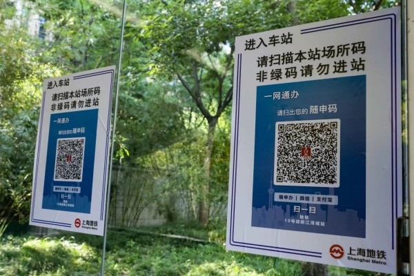 乘客进站前,必须扫“场所码”,显示“绿码”核酸48小时阴性,即可正常进站乘地铁。8点零3分,一辆开往虹桥火车站方向的列车停靠五角场站,候车乘客顺利上车。