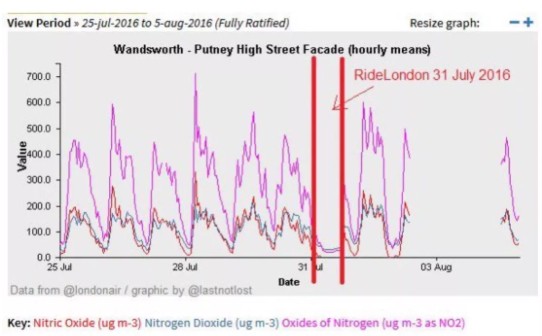 这一天发生了什么呢?那天是城市公路自行车赛,整个伦敦城区都禁止小汽车驶入,所以这一天氮氧化物浓度就非常低。
