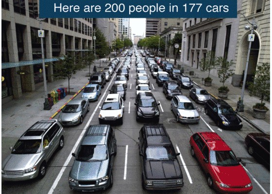 另外一种模式,比如这是洛杉矶的405高速,它提供了大量的土地,满足小汽车出行的需求,哪里堵了我就修桥架路,4条车道堵了,我就修20条车道,也就是不断地提高供给。