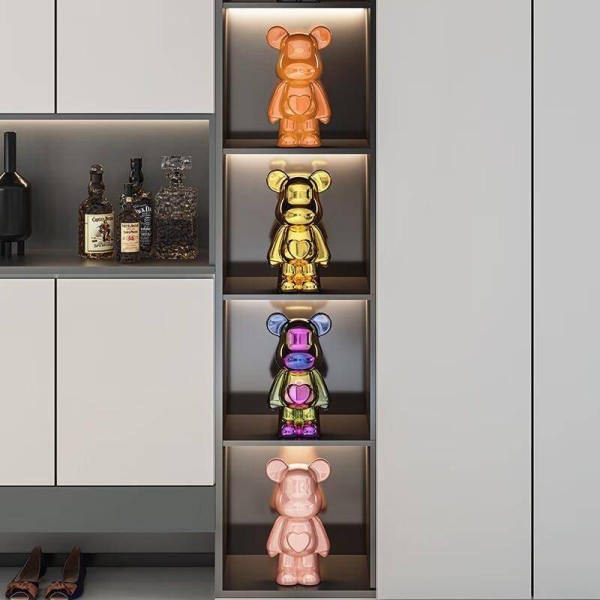 对于藏酒爱好者而言,酒柜不仅是储物空间,更是品味的展示区。暴力熊摆件与酒瓶的搭配意外地和谐,尤其是金色或珠光白款式,在玻璃器皿的映衬下更显高级感。部分款式还特别设计了适合酒柜场景的造型,让装饰与功能相得益彰。