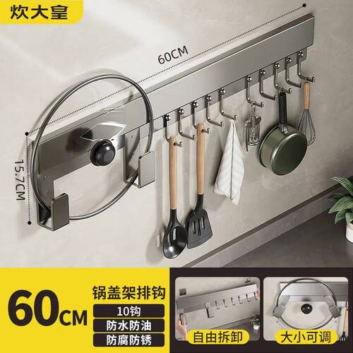 那么,如何让这款厨房挂钩架成为你生活中的得力助手呢?只需简单几步,你就能将它安装到你的厨房墙面上,让一切变得井井有条。无论是挂锅盖,还是悬挂各种工具,炊大皇免打孔厨房挂钩架都能为你提供完美的解决方案。