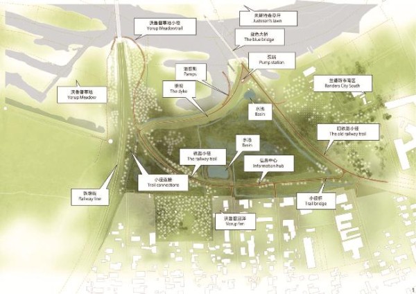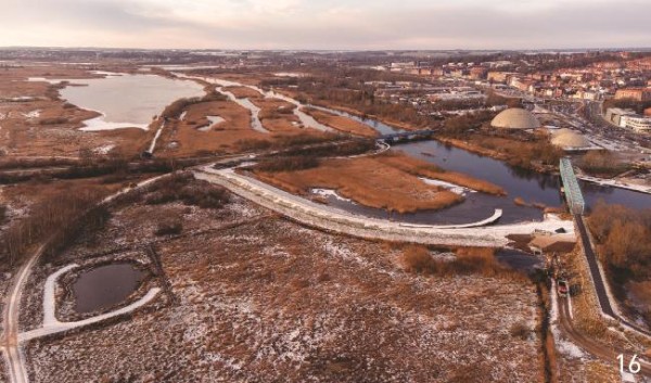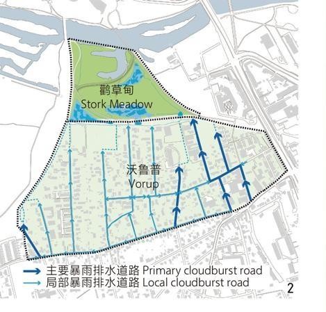 丹麦兰德斯市(Randers)气候适应项目通过将沃鲁普(Vorup)毗邻的自然区域斯特罗肯根(Storkeengen,译为鹳草甸)改造为公共自然公园,有效应对了兰德斯市当前和未来的气候挑战。项目通过整合气候韧性策略,将丹麦最长的河流古德纳河(Gudenå)沿线独特的自然三角洲生态系统引入兰德斯市中心,使居民得以亲近。