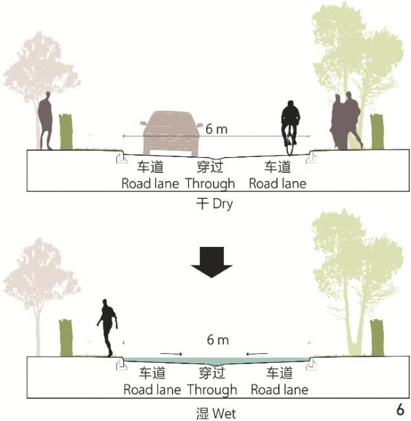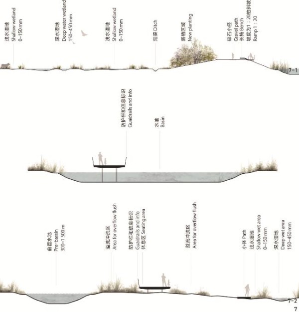 项目将兰德斯市屋顶、停车场和道路的雨水径流引入“暴雨排水渠”,经过作为净化池的湿地草甸过滤,保证雨水回归古德纳河完成净化。通过重构道路和排水系统,防止了不透水地表区域因阻碍自然排水而导致的积水问题。C.F.莫勒建筑事务所将受威胁的草地转变为湿地,旨在打造一个“建筑多功能工具”,既能提升自然环境,又能降低城镇的洪水风险,同时为居民和游客提供一个新的自然公园。