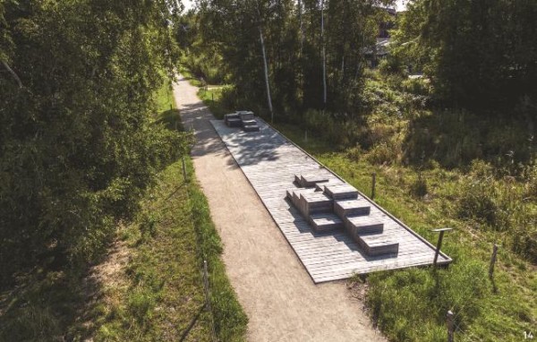 The platform is designed to educate visitors about local habitat values, stormwater handling, and the integration of nature into urban settings. The Stork Meadow’s hybrid approach has transformed the grasslands opposite the town and the river into water meadows. This method combined climate protection with urban and nature development, exemplifying C.F. Møller’s holistic approach.