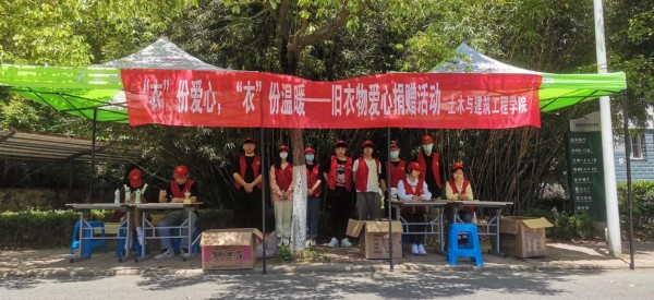 为弘扬中华民族传统美德,进一步增强同学们社会责任感、服务意识和奉献精神,培养学生的爱与责任心,土木与建筑工程学院5月2日下午在8号学生公寓和学子超市门前组织“旧衣物爱心捐赠”活动。
