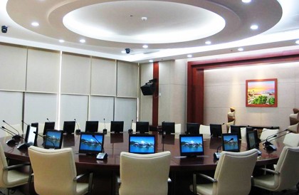 随着信息技术的不断发展,一个现代化的多功能会议室除了要满足传统简单的会议要求外,还应具有高雅格调的优美音质、清晰的图像演示。它由大屏幕显示、多媒体音视频信号源、音响、切换和中央集成控制几大部分组成,选取具备功能的DVD和录像机以及实物和图文传送器,通过大屏幕投影机还原其图像,通过中央集成控制设备,控制室内所有影音设备、信号切换、灯光、屏幕升降、音量调节等等功能,大大提高会议的工作效率和简化复杂的操作,能适合所有人士使用而不需要具备专业知识。