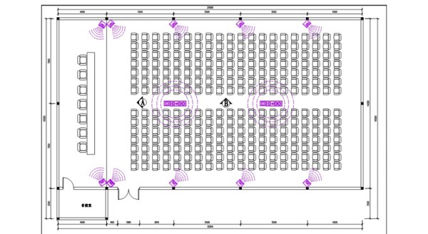 多功能会议厅的音响效果需满足厅堂扩声系统设计的声学特性指标标准。在建筑声学配合的基础上,一般还需要通过使用扩声设备进行音效补偿。