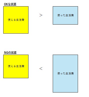 一方、計算上の「使える生活費」を実際に「使った生活費」が超えてしまっている時は、生活費が不足している状態です。