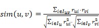 simu,v=i∈Iuvrui⋅rvii∈Iurui2⋅i∈Ivrvi2