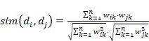 sim(di,dj)=∑k=1nwik2 ⋅∑k=1nwjk2 ∑k=1nwik⋅wjk