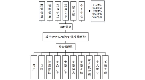 用户注册/登录、个人中心、口味管理、食谱分类管理、菜品分类管理、菜谱信息管理(含图文步骤、营养成分、难度星级)、视频做法管理(支持视频上传与分步解析)、菜谱文章管理(图文攻略)、菜谱论坛(发帖/回帖/置顶)、留言板(图文留言与管理员回复)、收藏夹、点赞/点踩、评论回复、系统简介滚动、关于我们、配置参数后台、口令 Token 安全校验。