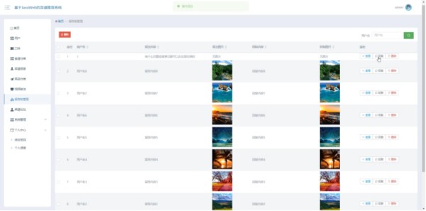 留言板管理;在留言板管理页面输入用户名进行搜索或删除留言板管理列表,并对留言板管理详细信息进行查看、回复或删除操作;如图5-13所示: