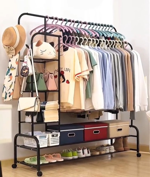 如果家里衣服已经没有地方搁置了,就可以购买一个双杆落地式衣架搭配上防尘袋整洁的摆放在卧室也是一个很不错的选择,既节省了空间还可以把家中多余的衣服放置在上面,卧室空间也不会显得凌乱。