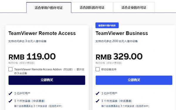 至于TeamViewer,其个人用户许可证最基础的远控使用月费就达到119元,解锁更多功能的版本月费高达329元,完全不是一个个人使用可以接受的次元,也就没有必要做太多讨论了。