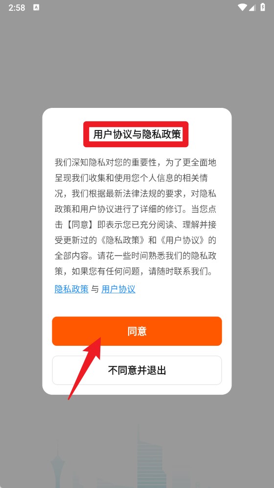 1、首次打开应用时,会弹出《用户协议与隐私政策》,请认真阅读后点击【同意】,以确保正常使用应用。