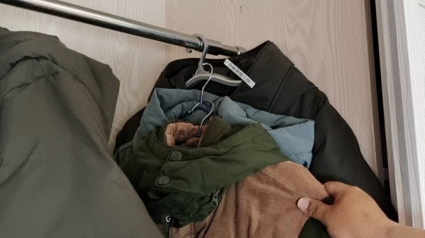 1.像一些冬季的厚重棉衣,我们可以直接把一件棉衣,挂在另外一件棉衣的衣架上面,因为棉衣的分量比较重,一般一个衣架的位置,挂两三件就可以,不要挂太多了。