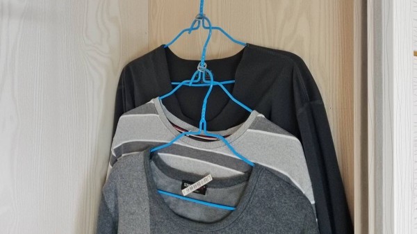 2.还有平时的毛衣,秋衣等一些分量比较轻的衣服,我们就可以利用易拉罐上面的拉环,来连接衣架,这样一个衣架的位置,就可以挂很多件的衣服,大大节省了衣柜里面的空间,而且把衣服挂起来收纳,会让衣服更加整洁。