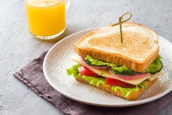 全麦面包、生菜、火腿、番茄、芝士、黑胡椒粉、橄榄油