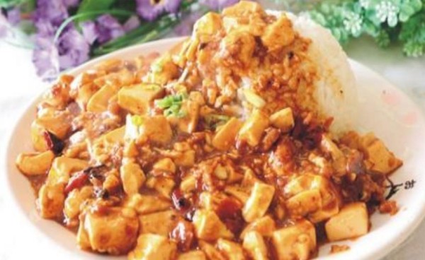 3)将已经做好的红烧豆腐淋在米饭上即可。