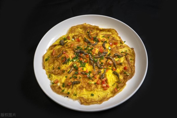 3)在平底锅中放入适量的橄榄油,放入葱末、番茄块翻炒,加入少量盐调味后放入鸡蛋液中翻炒,炒熟后装盘即可。