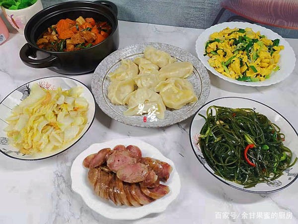 今天年初五了,大家也有吃饺子的习俗,小编也揉了一个面团,将剩下饺子馅包饺子,孩子爸动手煮了米饭。就这样,一家三口的午餐,备了6道家常美食,有猪肉、腊肠、鸡蛋、饺子,白菜、海带等食材,荤素搭配,味美下饭,虽是家常菜肴,全家也能吃到嗨,无论如何,我们要开心一点,相信一切都会好起来的。