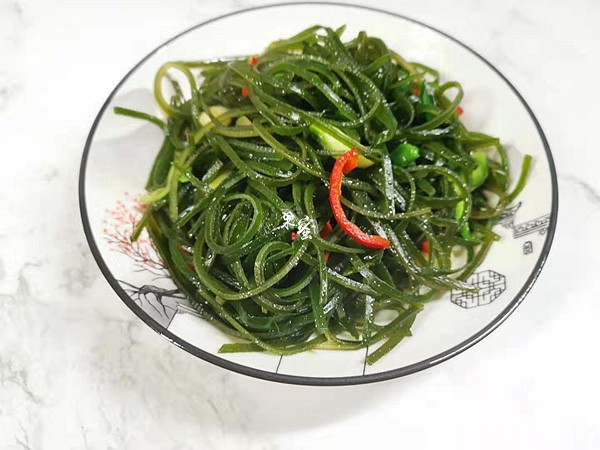 小炒海带丝:海带丝可以凉拌、入汤、炒食,焯水后,加入适量的蒜苗、红椒丝,用生抽、精盐炒一炒,家人都爱吃。