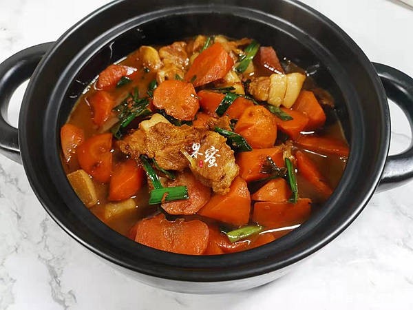 胡萝卜烧肉:胡萝卜维生素丰富,与猪肉同炖,家人连夸好吃,而这汤汁拌饭也是备受欢迎呢,胡萝卜软烂甘甜,猪肉鲜而不腻,味美又下饭。
