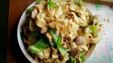2、开锅,下干豆腐翻炒,加韭菜、蚝油、盐;