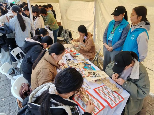上午 10 时,南湖红船木质拼装模型摊位前排起长队。该模型复刻历史细节,港航院志愿者化身“红色讲解员”,从在指导大家协作拼装的过程中,既详解船体榫卯咬合的工艺原理,又串联水利技术传承脉络,生动阐释“红船精神”的时代价值。