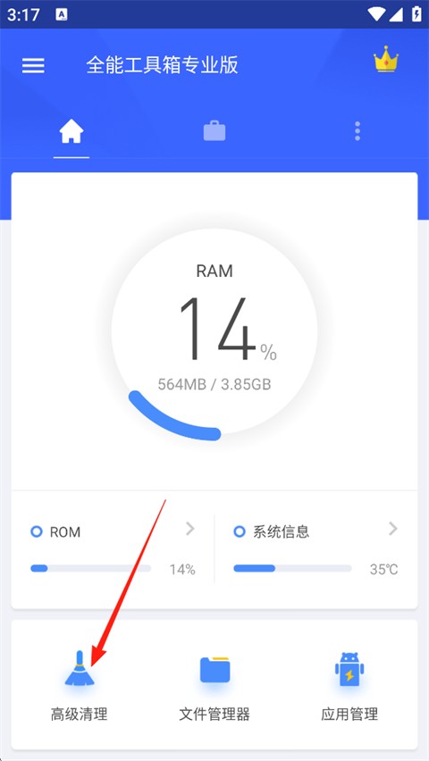 1、打开软件,用户可以直接使用【高级清理】功能来清理手机内的所有垃圾