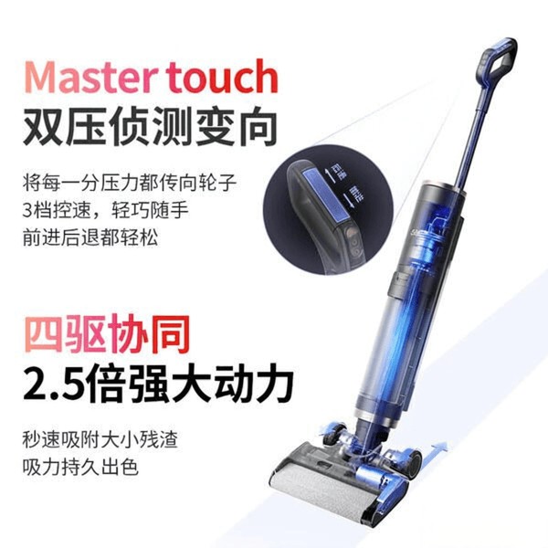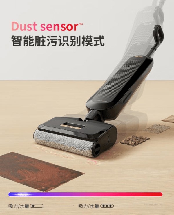 更令人惊喜的是,无线自动清洗与烘干功能,只需放回充电座,就能自动完成清洗和干燥,不用再担心水渍残留。防缠绕毛发的设计十分贴心,极大减少了线缠绕烦恼。智能调节和脏污感应,让清洁更高效、省力,无论是在硬地面还是细微角落都能应付自如。