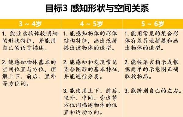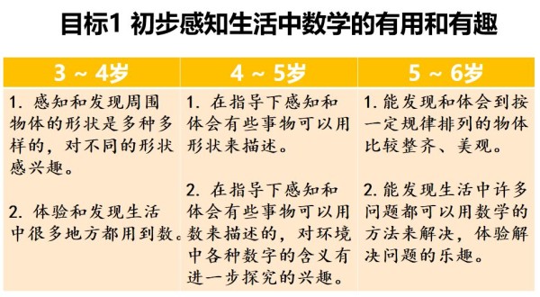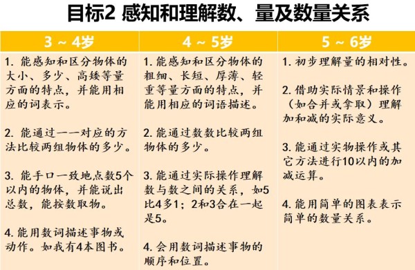 教育部颁发的《3-6岁儿童学习与发展指南》中的数学认知的目标: