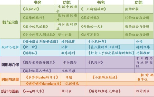 ——涉及集合、模式、数运算、数概念、统计、空间、比较等方面
