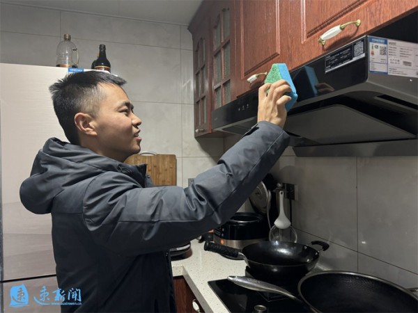 擦玻璃、清洗厨房厨具……张先生穿了一身轻便的衣服就开始了大扫除,他拿起抹布仔细擦拭灶台。张先生说:“前段时间请过保洁阿姨来打扫,家里不太乱。今天重点打扫厨房的卫生,祭灶时灶台可得干净点。”