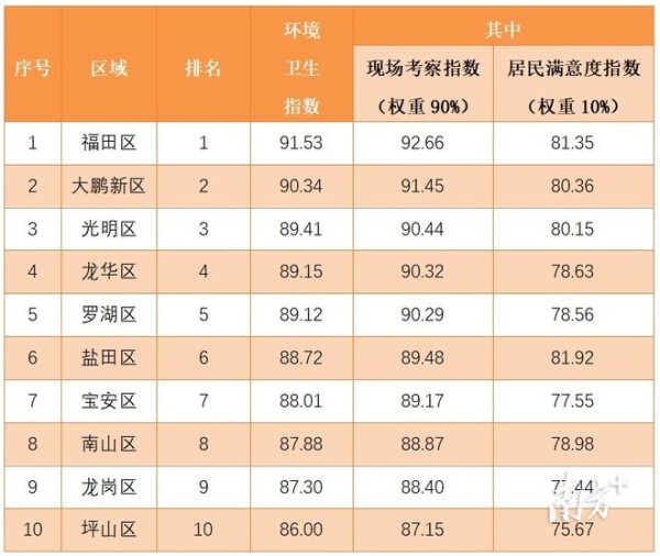 深圳城区环境哪家强,环境卫生指数榜来量一量。
