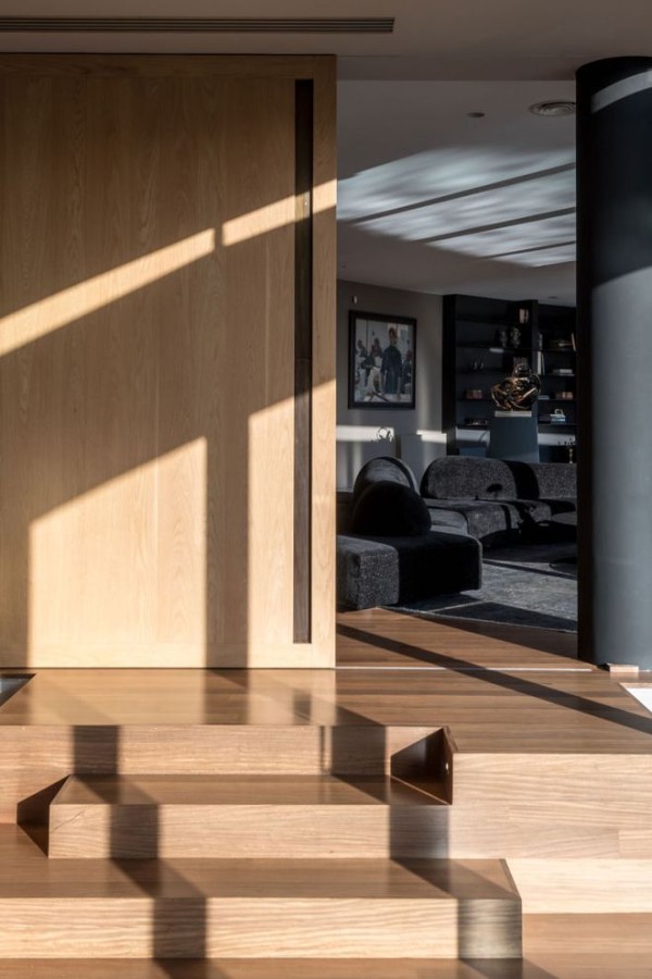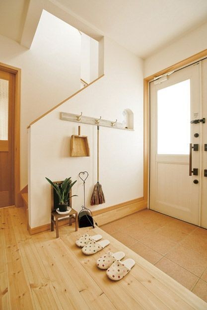 日式的玄关下沉设计,又或者与玄关共用墙面的卧室,利用降低或者抬高的设计,形成一个地台,如果高度在20-30厘米,那么也可以充当换鞋凳使用。