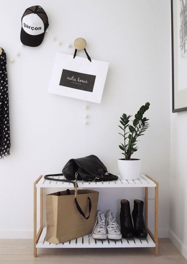 当凳子被赋予了收纳功能(凳子下方装上放鞋子的层板架),这样就可以把日常更换的鞋子放在这个位置,回家或者出门,坐在椅子上就可以第一时间换好鞋子,并把鞋子放到换鞋凳的层架上去。