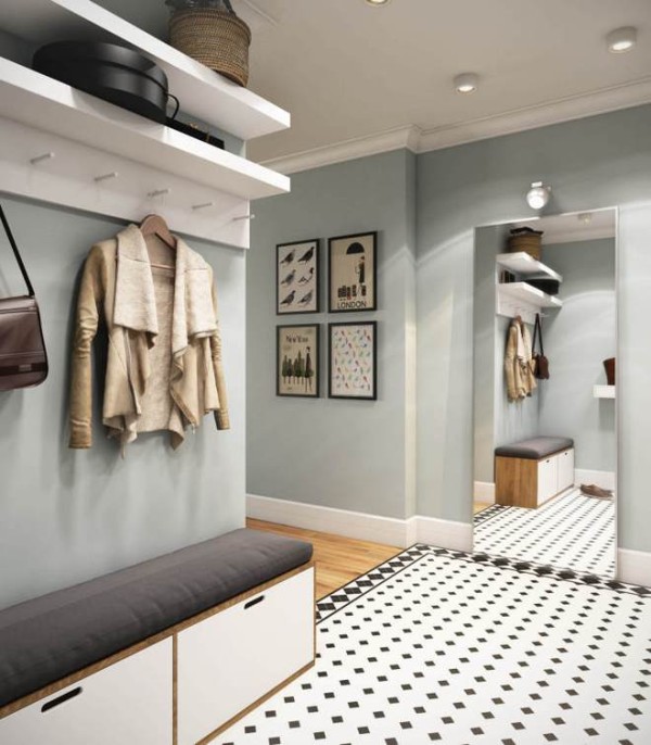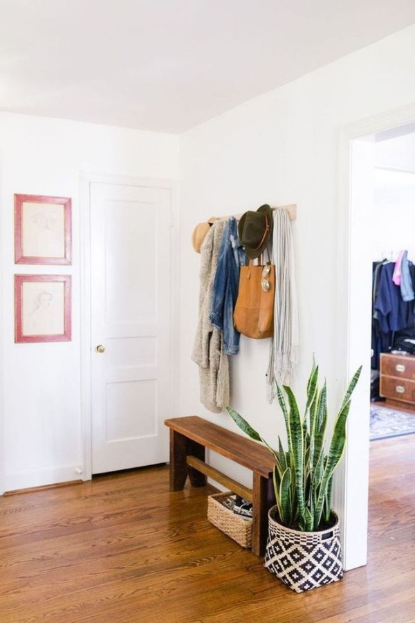 对于不喜欢成品凳,又或者摆放换鞋凳会影响正常的动线,那么可以选择一个壁挂式的折叠凳,挂在墙上省空间而且还兼具实用功能,可以说是两不误。