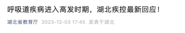 童叶青介绍,近期湖北省流行的呼吸道疾病与全国其他省份流行趋势基本一致,以流感为主,未发现新的病原体,公众不必恐慌,日常要养成坚持在密闭场所科学佩戴口罩、多通风、勤洗手、养成良好咳嗽礼仪的卫生习惯,倡导“一老一小”等重点高风险人群积极接种流感及肺炎球菌等相关疫苗。