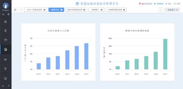 趋势分析:基于各类基础信息的变动情况,进行纵向时间尺度的趋势分析,可分析内容如参与分类村庄数、垃圾分类参与人数、分类参与率指标、分类收运车辆数、沤肥房垃圾处理能力、不同岗位员工数量等。分析掌握垃圾分类工作进展。